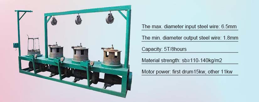 Bidragon automatic wire drawing machine is drived by gears and capable of drawing rod wires of high-level, medium-level, low-carbon steel, copper, aluminium, and so on. and appliable to manufacturing industries such as wood screw,nail, conducting wire rope for electrician use,spring,etc.