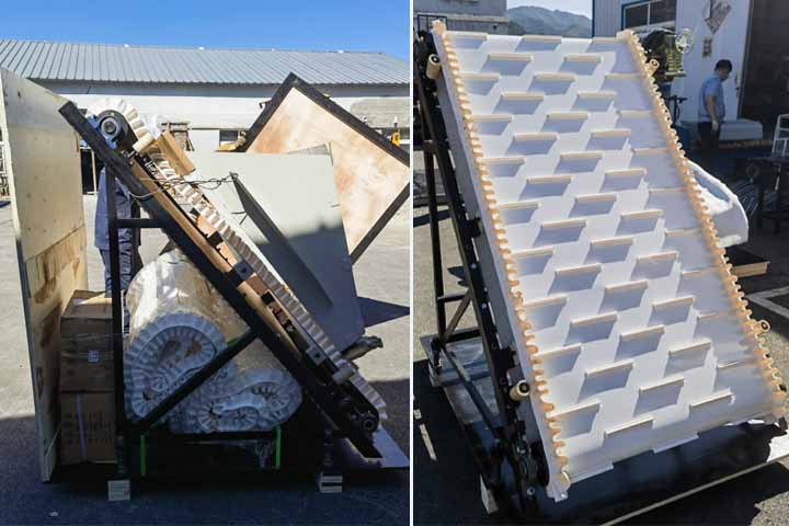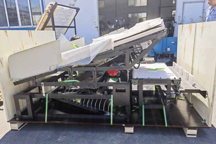 The machine is large, so the ice cream sticks and wooden spoon arranging machine will be dismantled and packed into 2 wooden boxes, we can also help you to assemble it after you receive.