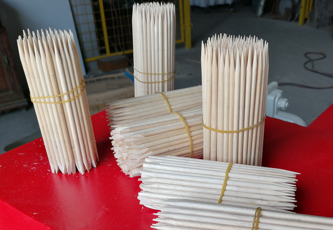 We can provide production line for making toothpicks, skewer sticks, manicure sticks, wood cotton sticks, small wood round sticks, and welcome to contact us for more information.