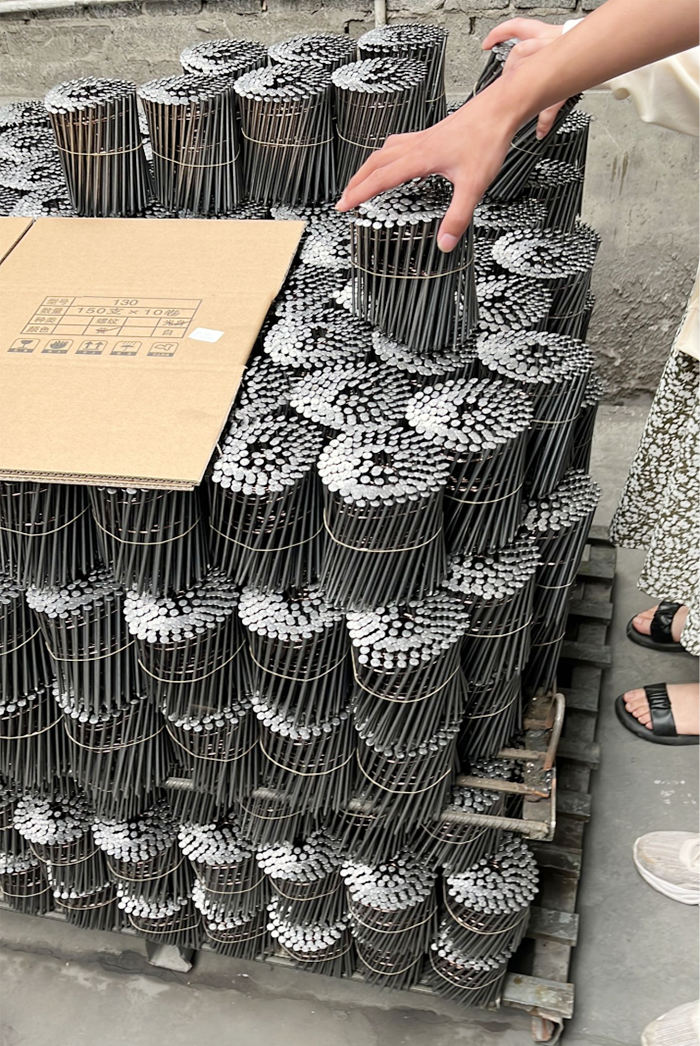 Some customers need to make coil nails, so I will take them to the workshop of coil nail equipment to visit the coil nail production equipment and wire rolling equipment. A complete set of machines, and let customers see our cost roll nails, are exactly what they need.