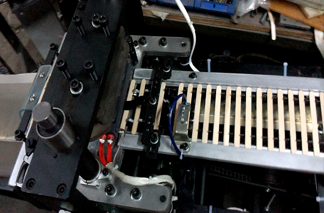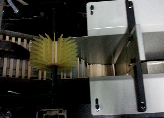 That’s a logo branding machine that can brand the label or trademark on two sides of wooden sticks. This machine adopts international standard drive mechanism to realize the machine working orderly and properly, reducing deviation and making the product appearance beautiful and orderliness. It has a high efficiency, high output capacity and low rejection rate. When the material channel is empty, the branding parts will be raised automatically to prevent the repeated brand.