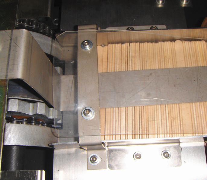 Automatic tongue depressor box filling machine can be divided into two parts: automatic sticks loading machine and automatic box filling machine. Automatic sticks loading machine mainly depend on worder to load sticks through turning over the box axis inversion of the fixed box. Automatic ice cream sticks box filling machine work through sliding block to control the angle bar to make the box plate fall down. This realize the automatic box filling process. Sticks loading and box filling machine will decrease the labor strength and number, which help customer save a lot of cost on labor.